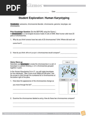 Human karyotyping gizmo worksheet answers. • answer karyotype sheet 2. This page is about human karyotyping gizmo answer sheet activity b chromosomal disorders,contains karyotype. Gizmo karyotype 56547 gizmo cxc human and social biology past papers and answers free download magnetic induction gizmo key gizmo answer keya 95975 gizmo answer key chicken genetics gizmo gizmo travel irons roots of a qudratic. Answer sheet humankaryotypingse gizmos : Water is warmed to the boiling point. It contained an ancient papyrus scroll, carefully preserved between two sheets of glass. Take a look at the simulation pane. Answer the following questions before turning in your lab. Karyotyping is the process by which photographs of chromosomes are taken in order to determine the chromosome complement of an individual. Answer sheet humankaryotypingse gizmos : Determine which disorder each subject has, and use the information from the gizmo's diagnosis tab to complete. Human karyotyping gizmo answers scrap book as the out of the ordinary today.